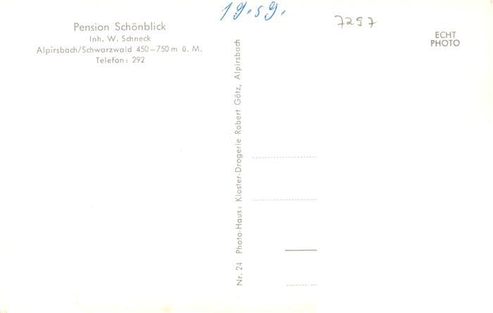 73914716 Alpirsbach Pension Schoenblick postalisch nicht gelaufen Erhaltung siehe scans [FriedD77] KatCode: 11110008237002