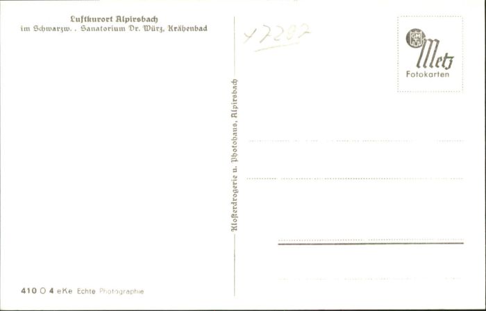 40760134 Alpirsbach Sanatorium Dr Würz Krähenbad * KatCode 11110008237002
