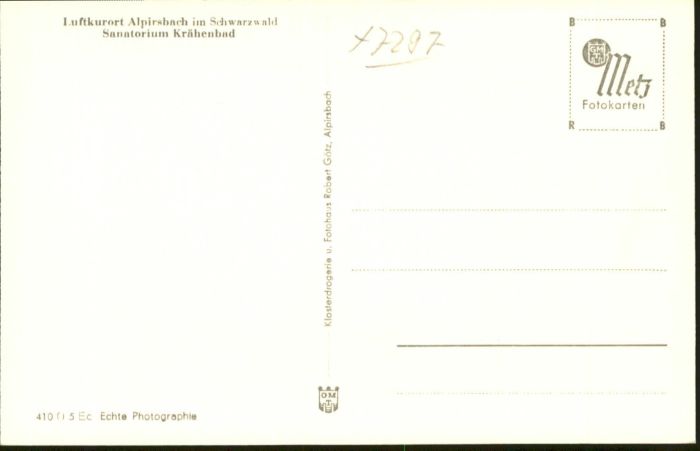 40760133 Alpirsbach Sanatorium Krähenbad KatCode 11110008237002