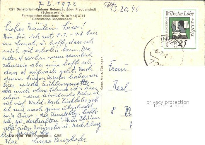 72549562 alte Postkarte Alpirsbach Sanatorium-Kurhaus Reinerzau postalisch gelaufen Erhaltung siehe scans [AndreD76 kv022box] KatCode: 11110008237002