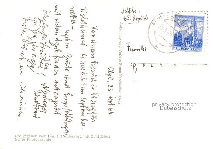 73103102 alte Postkarte Alpl Fliegeraufnahme Roseggers Waldheimat postalisch gelaufen Erhaltung siehe scans [KathaD81] KatCode: 11390223061306