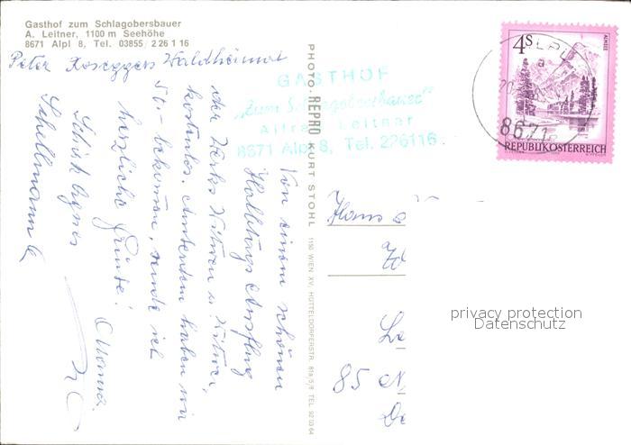 72179927 alte Postkarte Alpl Gasthof Schlagobersbauer postalisch gelaufen Erhaltung siehe scans KatCode: 11390223061306