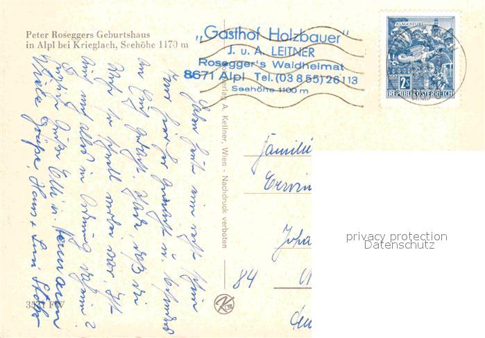 72711724 alte Postkarte Alpl Peter Roseggers Geburtshaus postalisch gelaufen Erhaltung siehe scans [FriedD77] KatCode: 11390223061306