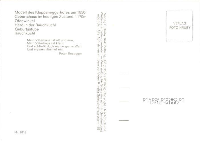 72551248 Alpl Peter Roseggers Geburtshaus postalisch nicht gelaufen Erhaltung siehe scans [LiesaD40] KatCode: 11390223061306