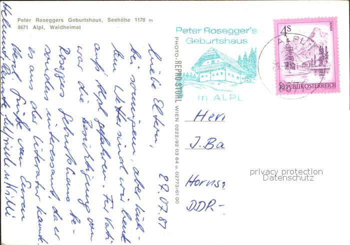 72207607 alte Postkarte Alpl Peter Roseggers Geburtshaus Feuerstelle Stube Waldheimat postalisch gelaufen Erhaltung siehe scans KatCode: 11390223061306