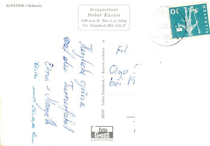 13920471 alte Postkarte Alpstein GR Hoher Kasten Staubern Faehlensee Saembtissee Kreuzberge postalisch gelaufen Erhaltung siehe scans [WerneD78] KatCode: 11470360545154