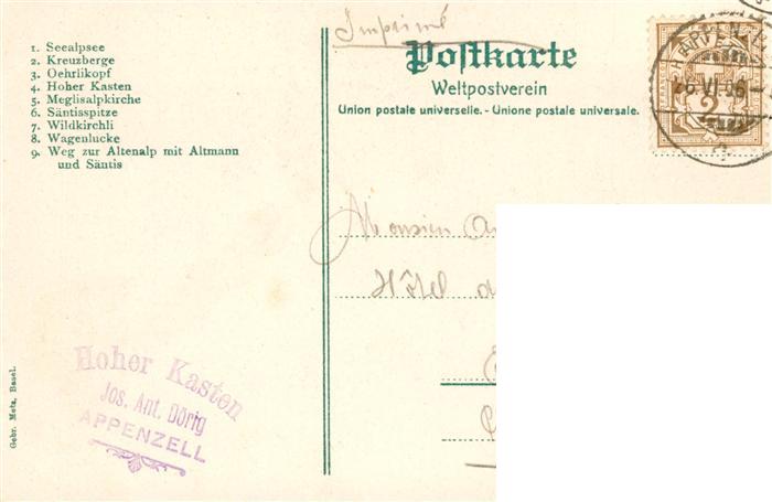 13920630 alte Postkarte Alpstein GR Teilansichten Weg zur Altenalp mit Altmann und Saentis postalisch gelaufen Erhaltung siehe scans [WerneD78] KatCode: 11470360545154