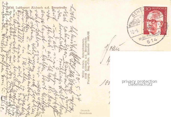 74105224 alte Postkarte Alsbach Bergstrasse Alsbach-Haehnlein Hessen Panorama Luftkurort postalisch gelaufen Fliegeraufnahme Erhaltung siehe scans [FriedD77] KatCode: 11110006432001