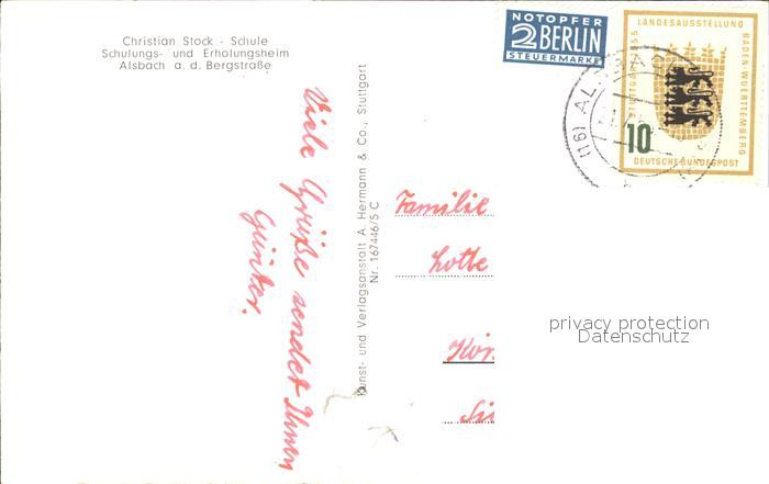 72096800 alte Postkarte Alsbach Bergstrasse Christian Stock Schule Erholungsheim postalisch gelaufen Erhaltung siehe scans KatCode: 11110006432001