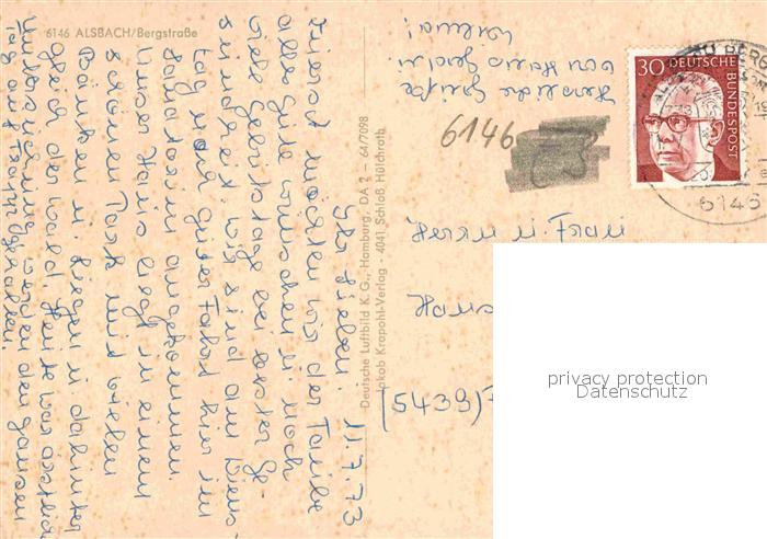 72844342 alte Postkarte Alsbach Bergstrasse Fliegeraufnahme postalisch gelaufen Erhaltung siehe scans [FriedD77] KatCode: 11110006432001