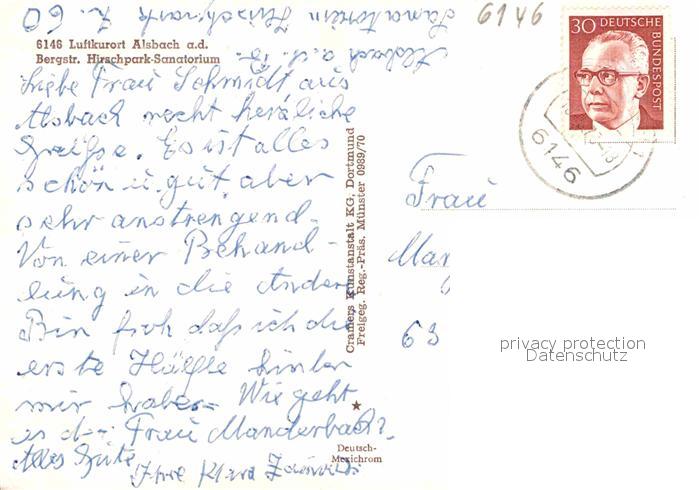 72868428 alte Postkarte Alsbach Bergstrasse Fliegeraufnahme Hirschpark Sanatorium postalisch gelaufen Erhaltung siehe scans [WerneD78] KatCode: 11110006432001