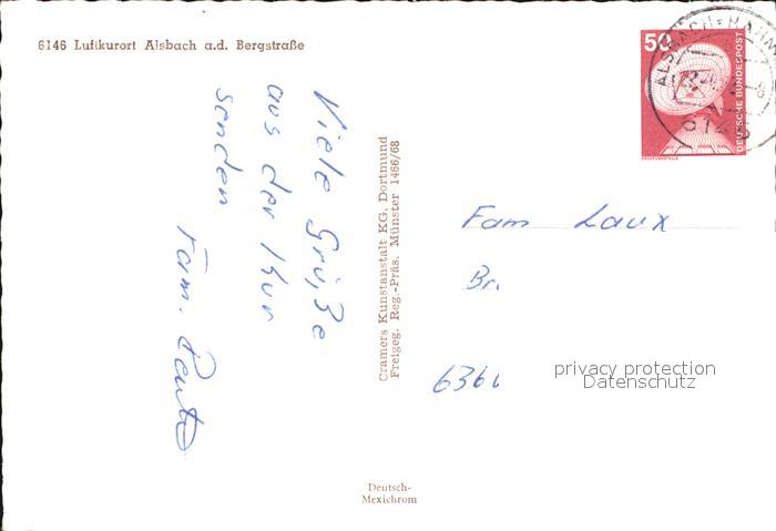72478693 alte Postkarte Alsbach Bergstrasse Luftbild postalisch gelaufen Erhaltung siehe scans KatCode: 11110006432001