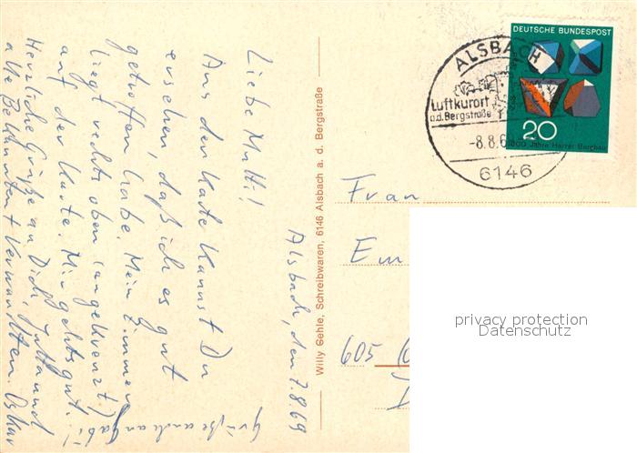73212614 alte Postkarte Alsbach Bergstrasse Panorama Luftkurort Hirschpark Sanatorium Hirschskulptur postalisch gelaufen Erhaltung siehe scans [FriedD77] KatCode: 11110006432001