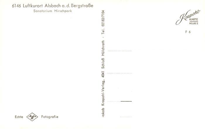 73914571 Alsbach Bergstrasse Sanatorium Hirschpark postalisch nicht gelaufen Erhaltung siehe scans [WerneD78] KatCode: 11110006432001