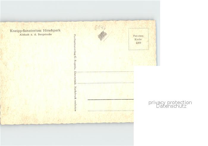 72217076 Alsbach Bergstrasse Sanatorium Hirschpark postalisch nicht gelaufen Erhaltung siehe scans KatCode: 11110006432001