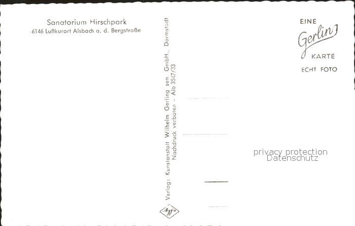 72096993 Alsbach Bergstrasse Sanatorium Hirschpark postalisch nicht gelaufen KatCode: 11110006432001