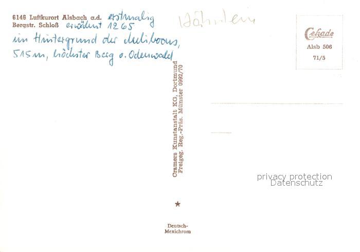 73212615 Alsbach Bergstrasse Schloss Burgruine Fliegeraufnahme postalisch nicht gelaufen Erhaltung siehe scans [FriedD77] KatCode: 11110006432001