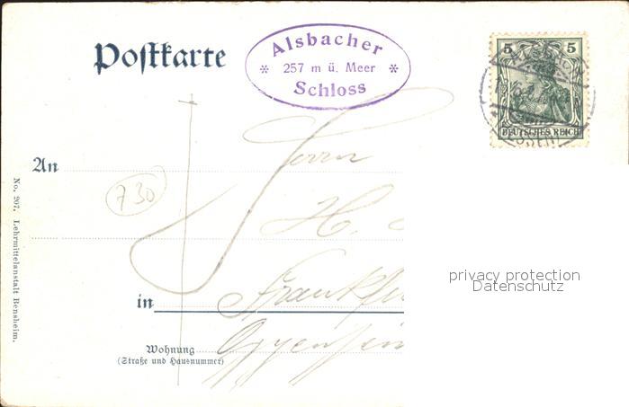 32212560 alte Postkarte Alsbach Bergstrasse Schloss postalisch gelaufen Erhaltung siehe scans KatCode: 11110006432001
