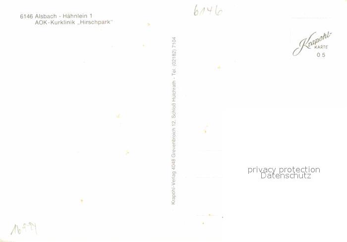 72725696 Alsbach-Haehnlein AOK Kurklinik Hirschpark postalisch nicht gelaufen Erhaltung siehe scans [LiesaD40] KatCode: 11110006432001