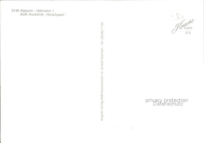 72495943 alte Postkarte Alsbach-Haehnlein AOK Kurklinik Hirschpark postalisch gelaufen Erhaltung siehe scans KatCode: 11110006432001