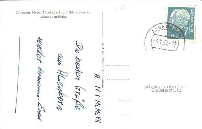 32036250 alte Postkarte Alsenborn Johannes Hess Buerobedarf und Schreibwaren postalisch gelaufen Erhaltung siehe scans KatCode: 11110007335004