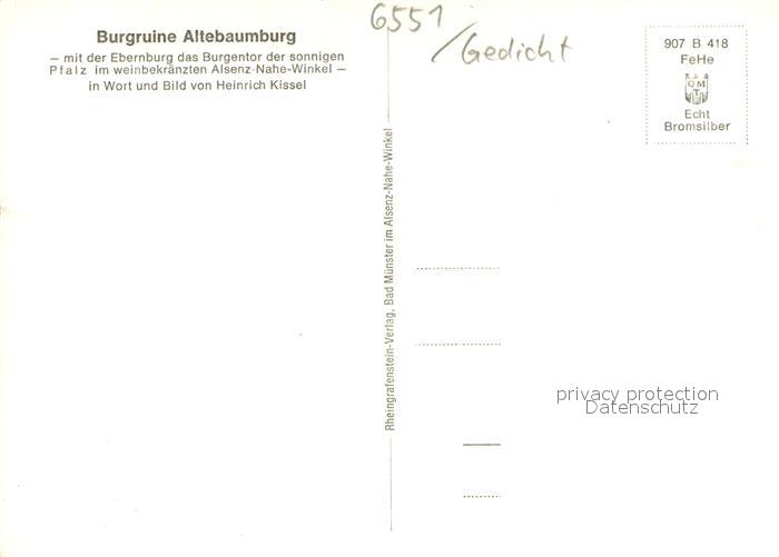 73695462 Alsenz Burgruine Altebaumburg Lied der Burgbeschaulichkeit postalisch nicht gelaufen Erhaltung siehe scans [FriedD77] KatCode: 11110007333003
