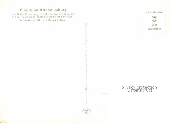 72821574 Alsenz Burgruine Altebaumburg postalisch nicht gelaufen Erhaltung siehe scans [AndreD76] KatCode: 11110007333003