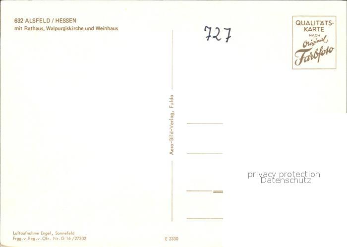 72539303 Alsfeld Fliegeraufnahme Rathaus Walpurgiskirche und Weinhaus postalisch nicht gelaufen Erhaltung siehe scans [AndreD76 kt119box] KatCode: 11110006535001