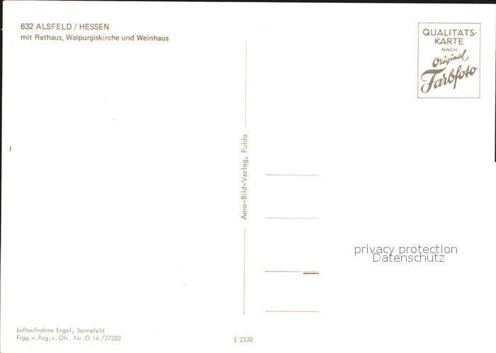72607583 Alsfeld Fliegeraufnahme Rathaus Walpurgiskirche und Weinhaus postalisch nicht gelaufen Erhaltung siehe scans [LiesaD40] KatCode: 11110006535001