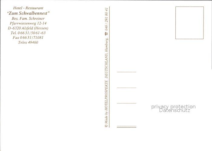 72542880 Alsfeld Hotel zum Schwalbennest postalisch nicht gelaufen Erhaltung siehe scans [AndreD76 kv012box] KatCode: 11110006535001
