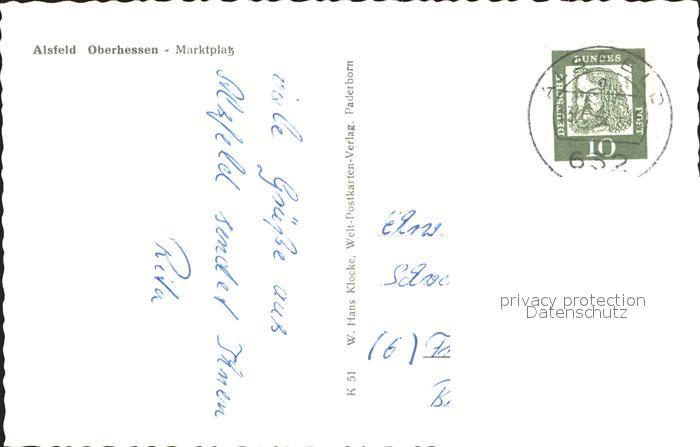 72100715 alte Postkarte Alsfeld Marktplatz postalisch gelaufen Erhaltung siehe scans KatCode: 11110006535001
