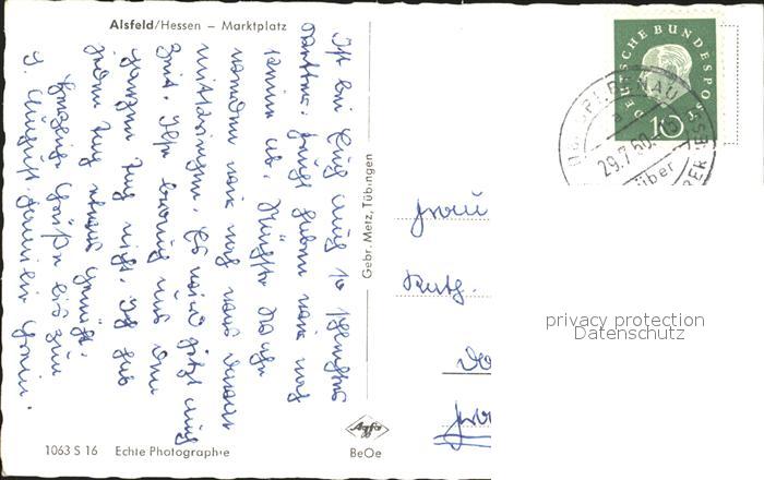 72096037 alte Postkarte Alsfeld Marktplatz postalisch gelaufen Erhaltung siehe scans KatCode: 11110006535001