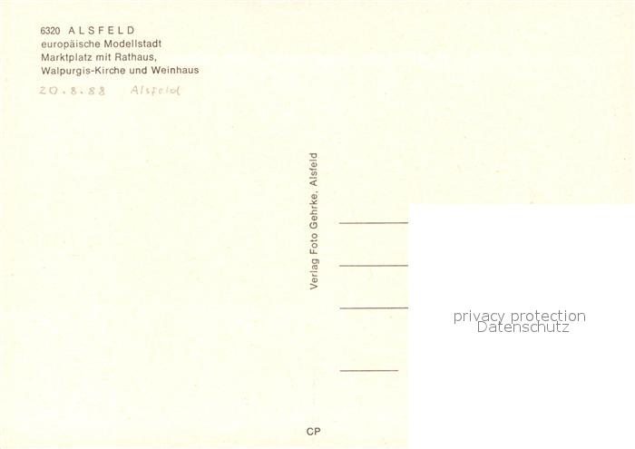 73247827 Alsfeld Marktplatz Rathaus Walpurgiskirche Weinhaus Fachwerkhaus postalisch nicht gelaufen Erhaltung siehe scans [FriedD77] KatCode: 11110006535001