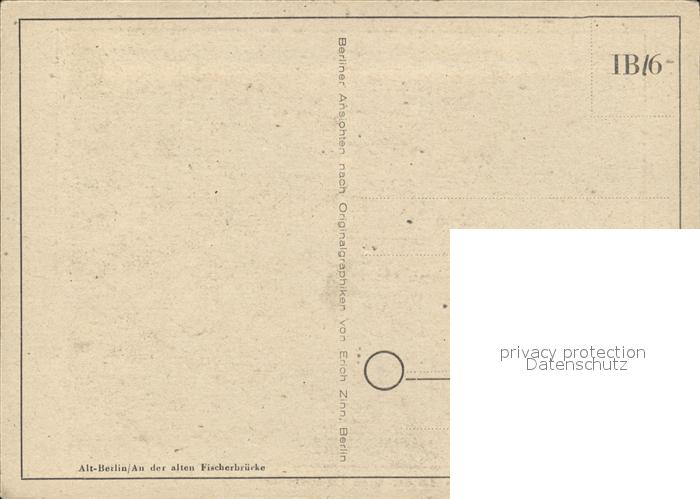 72061424 Alt Berlin An der alten Fischerbruecke Zeichnung Kuenstler Erich Zinn postalisch nicht gelaufen Erhaltung siehe scans KatCode: 11110011000000