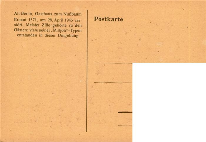73869920 Alt Berlin Gasthaus Zum Nussbaum Zeichnung postalisch nicht gelaufen Erhaltung siehe scans [FriedD77] KatCode: 11110011000000
