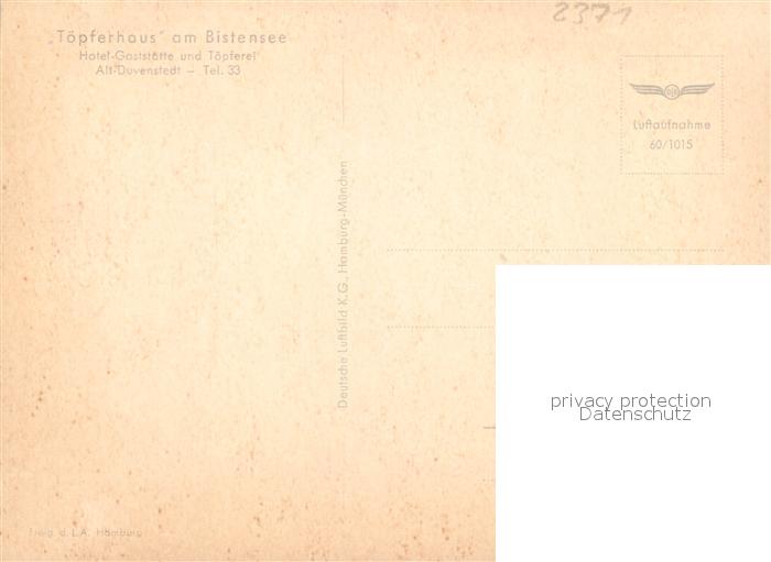 43506026 Alt Duvenstedt Fliegeraufnahme Toepferhaus am Bistensee postalisch nicht gelaufen Erhaltung siehe scans [KathaD81] KatCode: 11110001058003