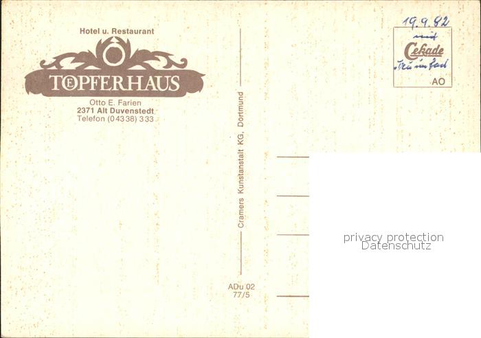 72277328 Alt Duvenstedt Hotel Restaurant Topferhaus postalisch nicht gelaufen Erhaltung siehe scans KatCode: 11110001058003