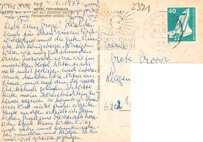 73941220 alte Postkarte Alt Duvenstedt Hotel Toepferhaus postalisch gelaufen Erhaltung siehe scans [FriedD77] KatCode: 11110001058003
