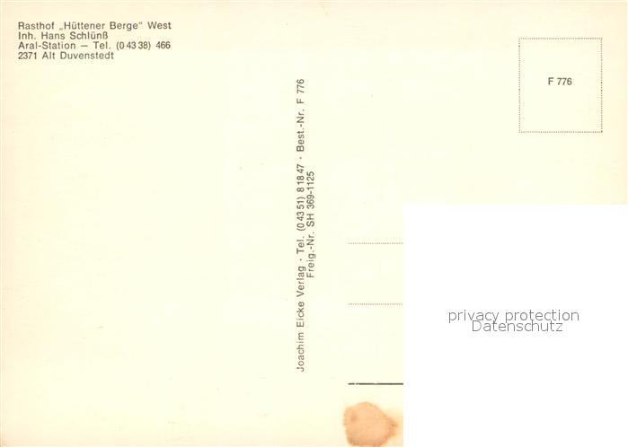 73689453 Alt Duvenstedt Rasthof Huettener Berge Fliegeraufnahme postalisch nicht gelaufen Erhaltung siehe scans [FriedD77] KatCode: 11110001058003