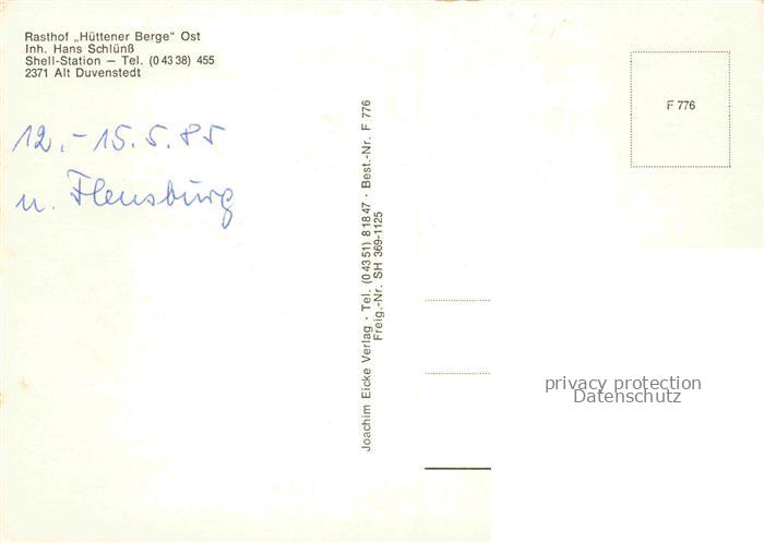 74016866 Alt Duvenstedt Rasthof Huettener Berge postalisch nicht gelaufen Erhaltung siehe scans [WerneD78] KatCode: 11110001058003