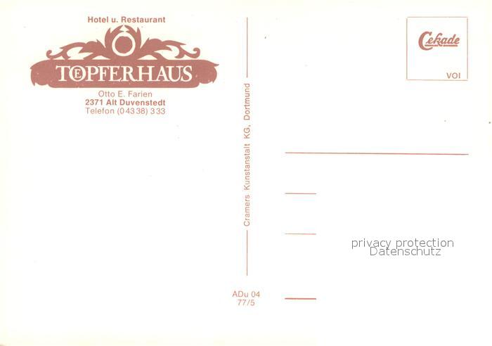 73730860 Alt Duvenstedt Restaurant-Hotel Topferhaus postalisch nicht gelaufen Erhaltung siehe scans [LiesaD40] KatCode: 11110001058003