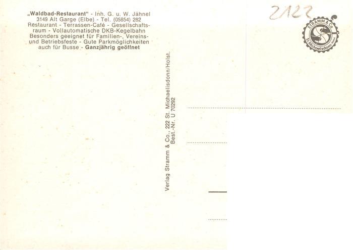 73873923 Alt Garge Waldbad-Restaurant Freibad postalisch nicht gelaufen Erhaltung siehe scans [FriedD77] KatCode: 11110003355009