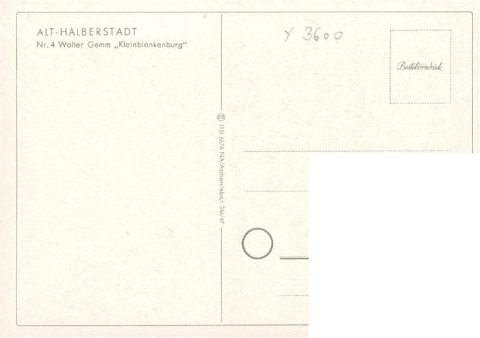 73890638 Alt Halberstadt Gemm Kleinblankenburg Kuenstlerkarte postalisch nicht gelaufen Erhaltung siehe scans [WerneD78] Wern Katcode 11110015085135