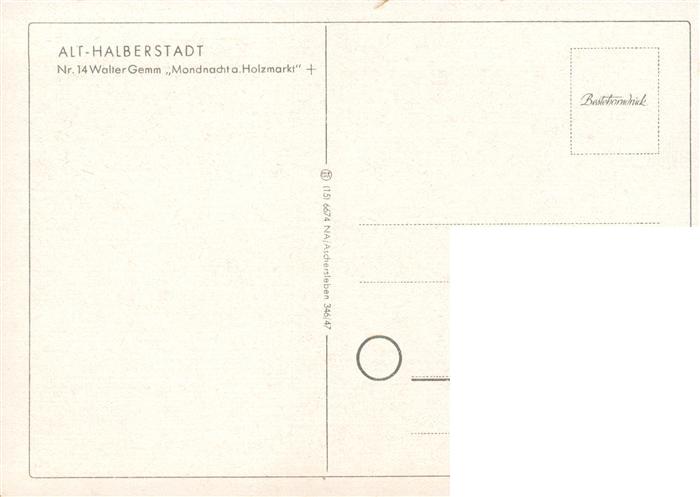 73909625 Alt Halberstadt Mondnacht am Holzmarkt Gemaelde postalisch nicht gelaufen Erhaltung siehe scans [WerneD78] Wern Katcode 11110015085135