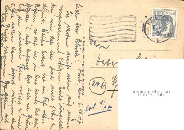 72056233 alte Postkarte Alt Hamburg Kirchenstrasse postalisch gelaufen Erhaltung siehe scans KatCode: 11110002000000