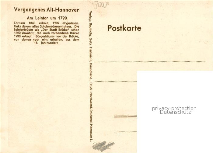 73691007 Alt Hannover Am Leintor um 1790 postalisch nicht gelaufen Erhaltung siehe scans [WerneD78] KatCode: 11110003241001