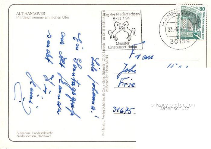 73233374 alte Postkarte Alt Hannover Pferdeschwemme hohes Ufer postalisch gelaufen Erhaltung siehe scans [KathaD81] KatCode: 11110003241001