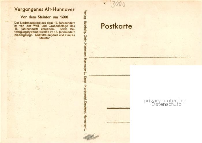 73691013 Alt Hannover Vor dem Steintor um 1600 Stadtmauerring postalisch nicht gelaufen Erhaltung siehe scans [WerneD78] KatCode: 11110003241001