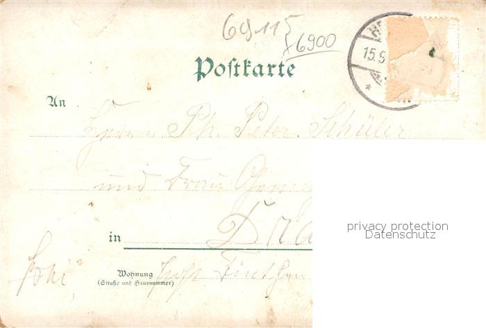 42965400 Alt Heidelberg Neckar Hotel Bellevue Schlosshotel alte Bruecke Schloss Koenigsstuhl postalisch gelaufen Erhaltung siehe scans [KathaD81] alte Postkarte Kath Katcode 11110008221000