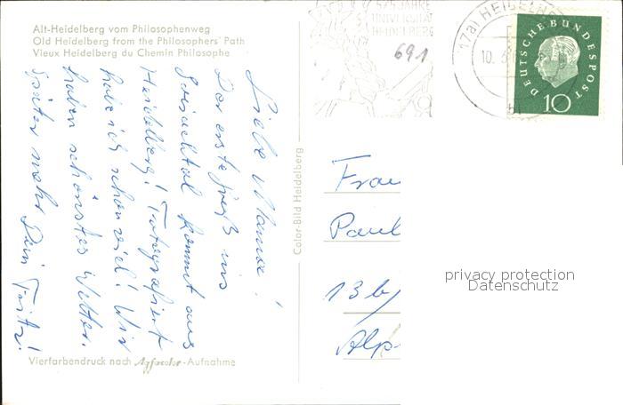 72602761 alte Postkarte Alt Heidelberg Neckar Panorama Blick vom Philosophenweg postalisch gelaufen Erhaltung siehe scans [FriedD77] KatCode: 11110008221000